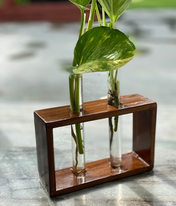 This handmade, wooden tube table planter from Brio Art House is the perfect accessory for your work-table, coffee-table or your personal nook, to add just the right dash of green to your space. This version consists of two tubes in the hand-crafted wooden compact holder. The tubes hold the plants.