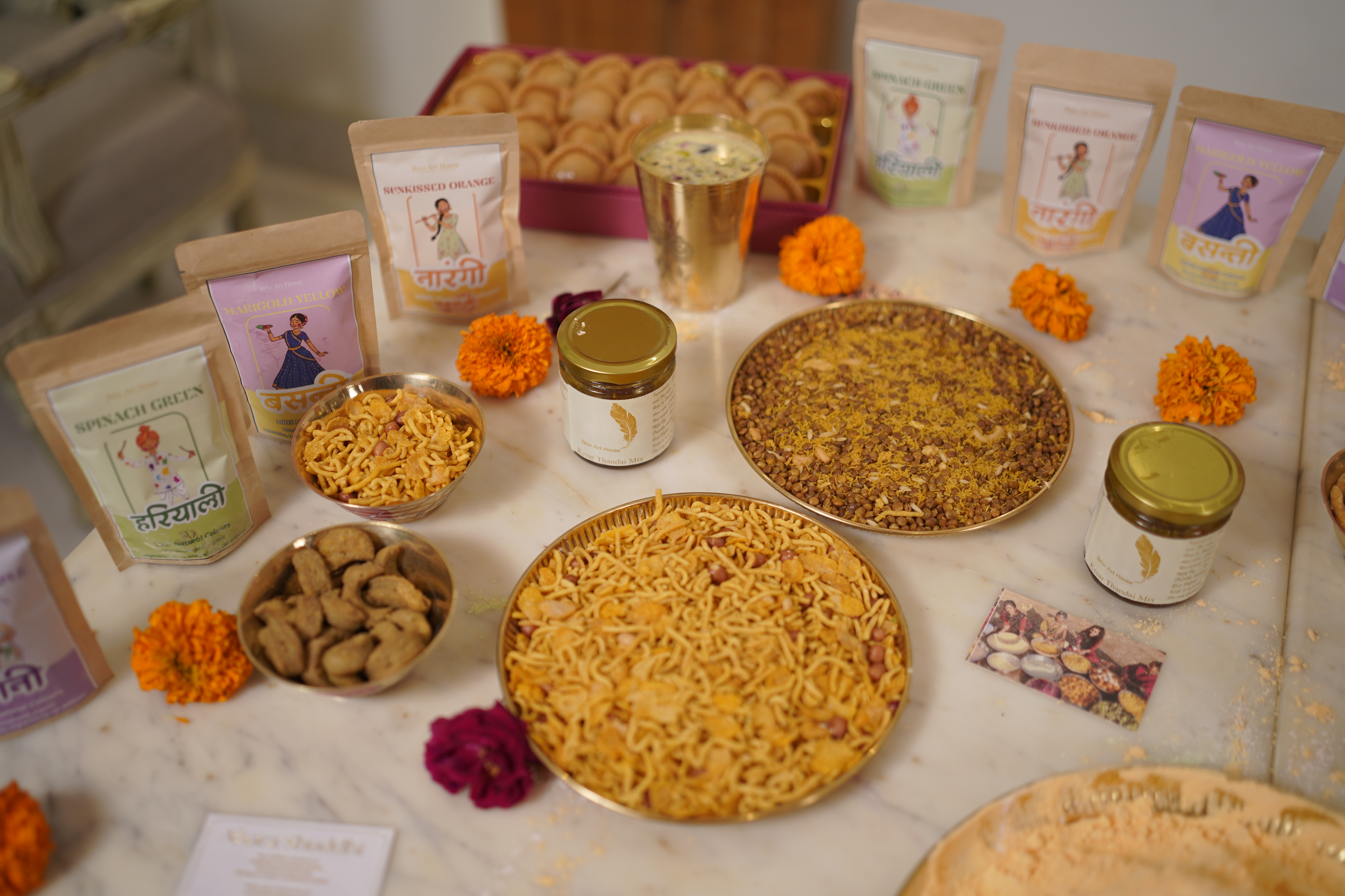 The Namkeen Box has 4 packets of Namkeen, each in 150 gms packets.