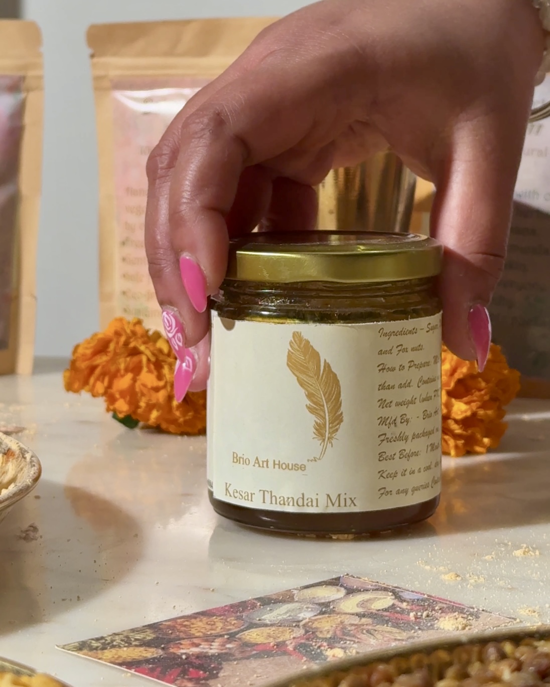 Brio’s AHARA Shuddhi – Kesar Thandai Mix. A premium Kesar Thandai Mix from Brio’s AHARA Shuddhi line, expertly crafted to elevate the classic thandai experience.