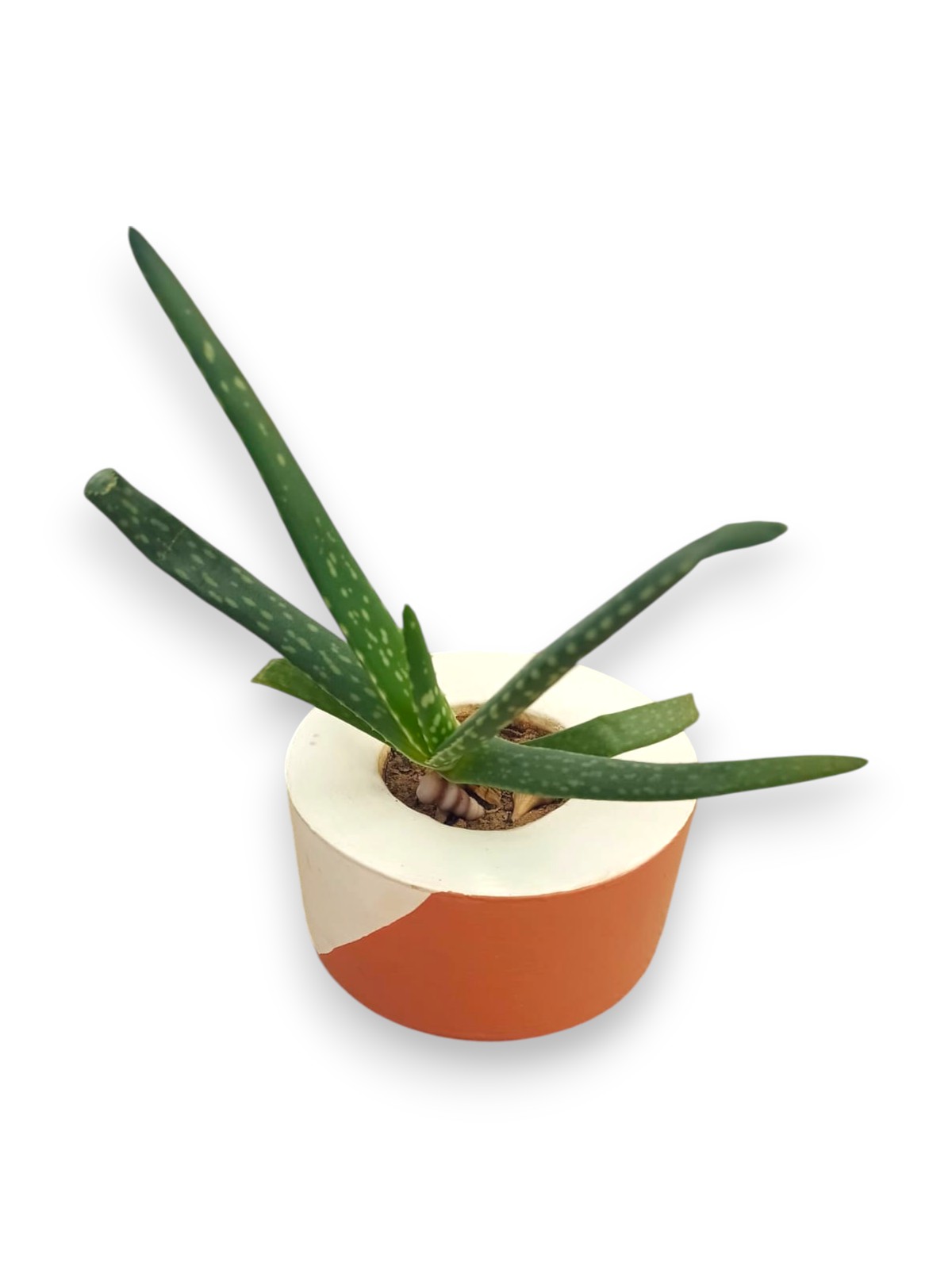 The planter features a clean two-tone matte finish that suits modern homes, offices, cafés, and studios. Its compact size makes it perfect for succulents, aloe vera, cactus, herbs, and small indoor plants.