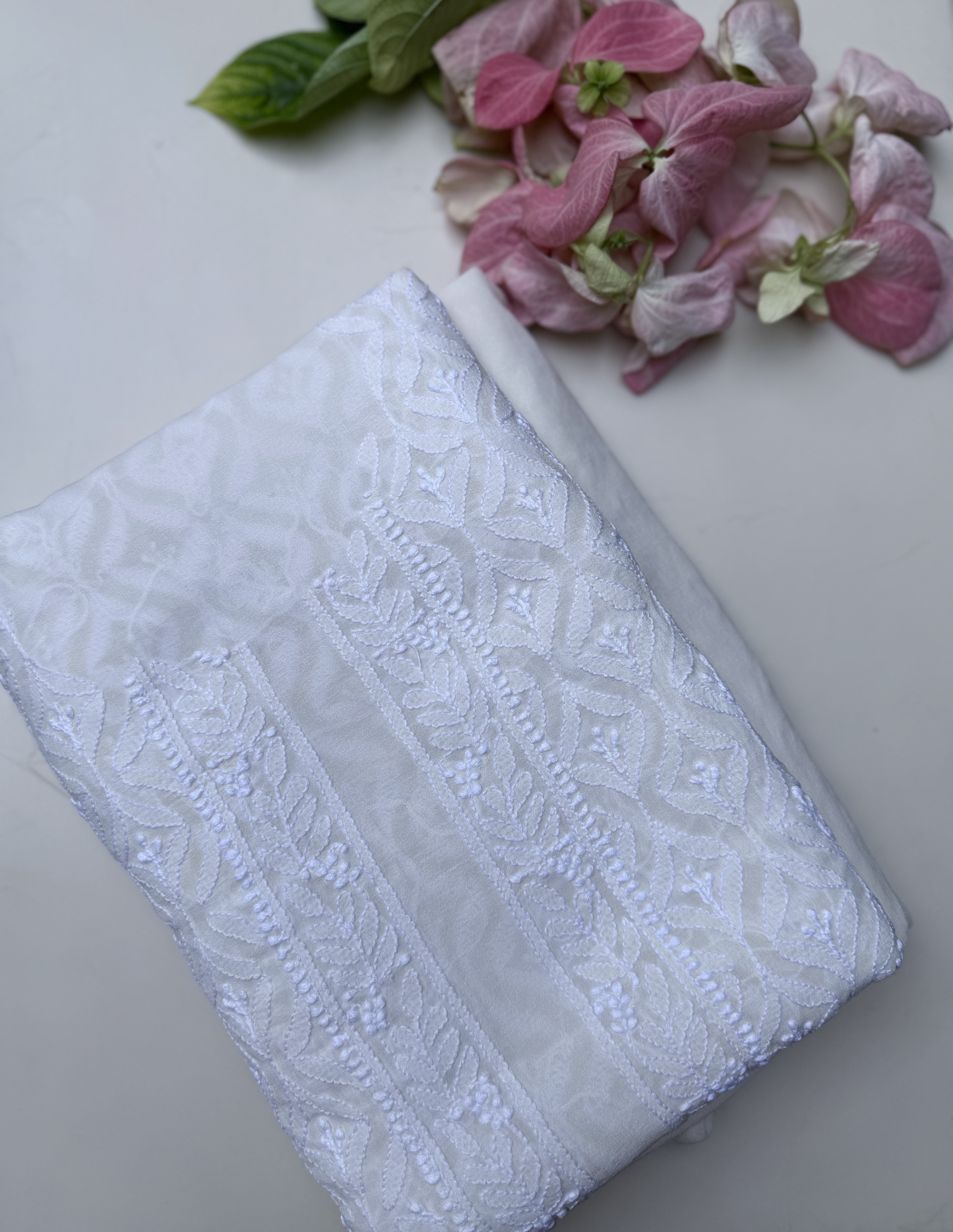 Elevate your ethnic wardrobe with our Unstitched Georgette Chikankari Suit Piece, a timeless blend of grace and craftsmanship. Adorned with intricate hand-embroidered Chikankari work, this fabric embodies the finesse of Lucknow’s traditional artistry. The soft georgette drapes beautifully and offers endless possibilities for custom tailoring — whether you envision an elegant kurta, a flowing Anarkali, or a stylish fusion silhouette. Ideal for festive occasions or refined everyday wear, this suit piece brings heritage and versatility together in perfect harmony.
